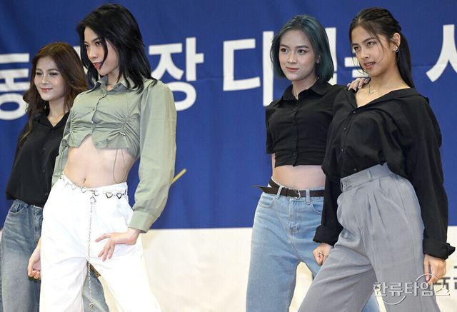 인도네시아 걸그룹 스타비가 30일 오전 서울 중구 충무아트홀에서 열린 '2023 동반성장 디딤돌 사업 국내' 기자간담회에서 멋진 무대를 선보이고 있다.