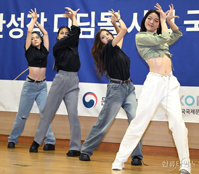 인도네시아 걸그룹 스타비가 30일 오전 서울 중구 충무아트홀에서 열린 '2023 동반성장 디딤돌 사업 국내' 기자간담회에서 멋진 무대를 선보이고 있다.