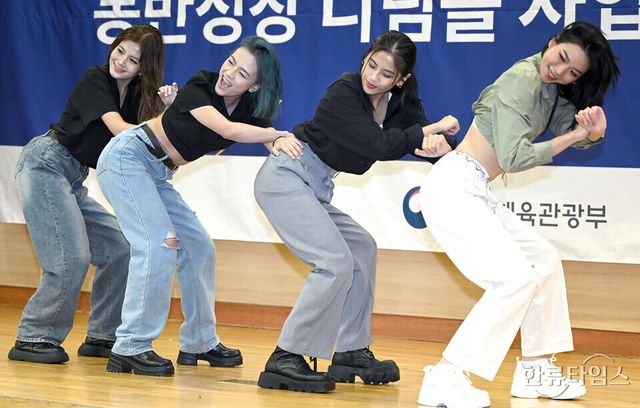 인도네시아 걸그룹 스타비가 30일 오전 서울 중구 충무아트홀에서 열린 '2023 동반성장 디딤돌 사업 국내' 기자간담회에서 멋진 무대를 선보이고 있다.