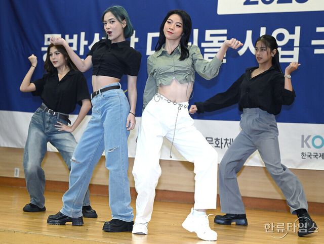 인도네시아 걸그룹 스타비가 30일 오전 서울 중구 충무아트홀에서 열린 '2023 동반성장 디딤돌 사업 국내' 기자간담회에서 멋진 무대를 선보이고 있다.