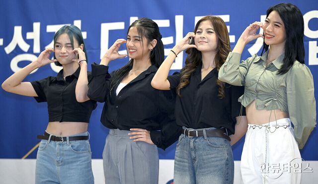 인도네시아 걸그룹 스타비가 30일 오전 서울 중구 충무아트홀에서 열린 '2023 동반성장 디딤돌 사업 국내' 기자간담회에 참석해 포토타임을 갖고 있다.