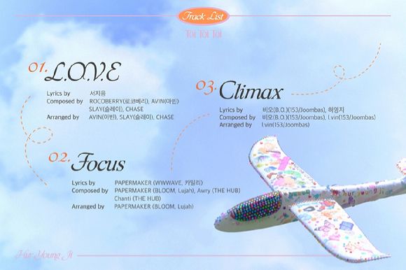 허영지의 싱글 1집 'Toi Toi Toi'에는 타이틀곡 'L.O.V.E'(엘.오.브이.이)를 포함해 'Focus'(포커스), 'Climax'(클라이맥스) 등 총 3개 트랙이 수록됐다. 허영지는 'Climax'의 작사에 직접 참여해 음악적 역량을 발휘한다. 유수의 작가진 참여가 돋보이는 가운데, 타이틀곡 'L.O.V.E'에는 다수의 히트곡을 탄생시킨 로코베리와 서지음이 지원사격에 나서 눈길을 끈다.