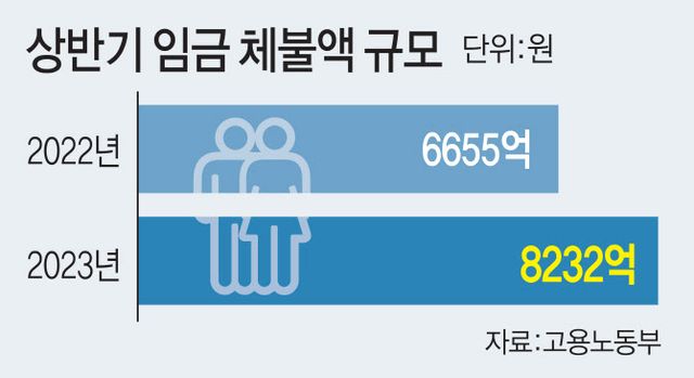 올해 상반기 임금체불액은 8232억원으로 지난해 상반기 체불액(6655억원) 대비 23.7% 증가했다. 고용부는 주택시장의 침체, 원자재 가격 상승에 따른 공사비 증가, 금리인상 등의 영향으로 건설업을 중심으로 임금체불이 증가했다고 설명했다. 2020년 17.6% 수준인 건설업의 체불 비중은 올해 상반기 23.9%에 달한다.