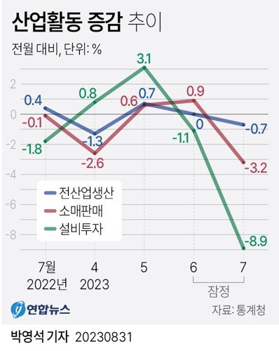 소매판매액지수는 3.2% 줄며 2020년 7월(-4.6%) 이후 3년 만에 최대폭 감소했다.