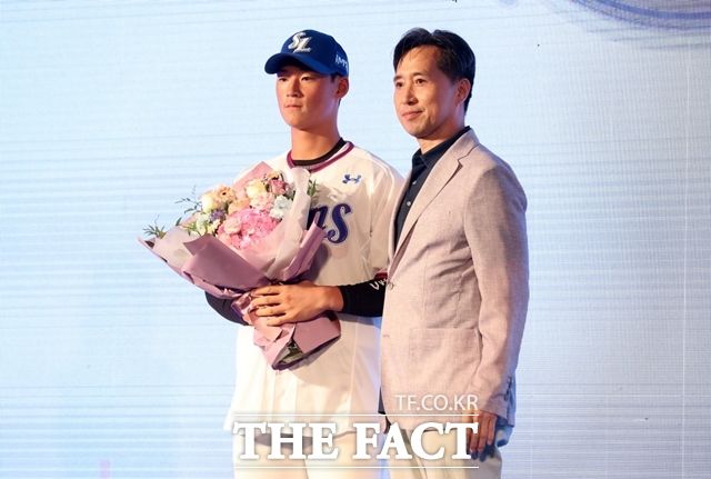 2023 KBO 신인드래프트에서 프로야구 삼성 라이온즈로부터 1라운드 지명된 인천고 투수 이호성(왼쪽)./뉴시스