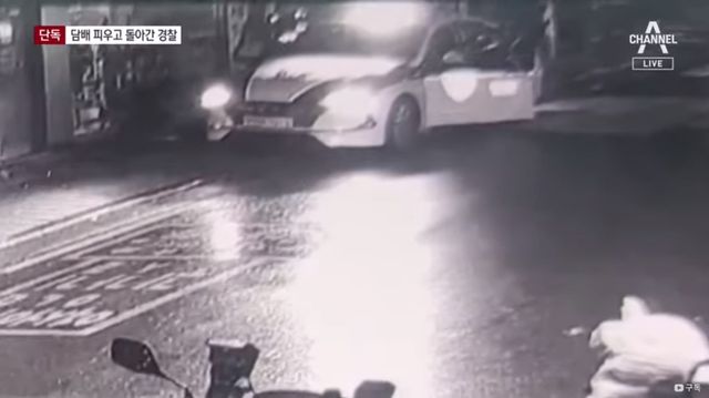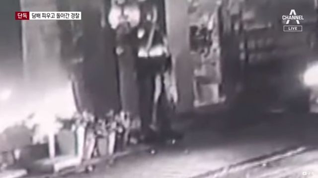 현장에 출동한 경찰이 순찰차에서 내려 담배를 피우고 있는 모습 / 이하 유튜브 '채널A 뉴스'