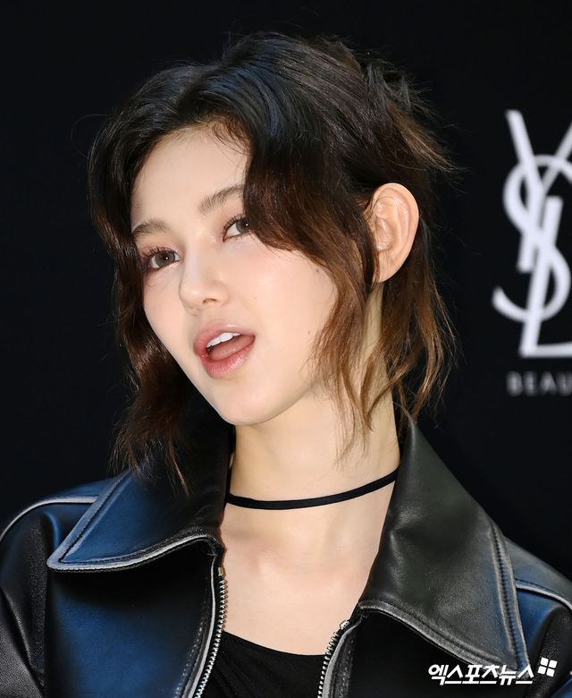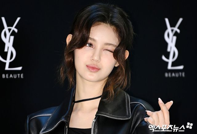 이날 포토콜 행사에 참석한 뉴진스 다니엘이 포즈를 취하고 있다.