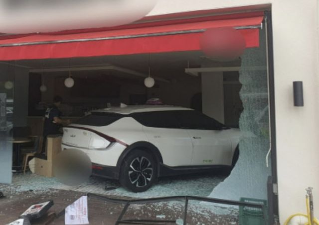 1일 소방 당국에 따르면 이날 오전 8시 15분쯤 경북 구미시 송정동에서 60대 택시 기사가 모는 택시 한 대가 카페 유리창을 뚫고 내부로 돌진했다.