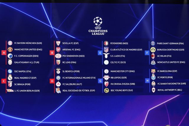 김민재가 속한 독일 명문 바이에른 뮌헨은 잉글랜드 명문 맨체스터 유나이티드를 비롯해 FC코펜하겐(덴마크), 갈라타사라이(튀르키예)와 A조에 편성됐다. 이강인이 뛰는 PSG는 보루시아 도르트문트(독일), AC밀란(이탈리아), 뉴캐슬 유나이티드(잉글랜드)와 F조에 속했으며, 오현규와 양현준, 권혁규가 뛰는 셀틱(스코틀랜드)는 페예노르트(네덜란드), 아틀레티코 마드리드(스페인), 라치오(이탈리아)와 함께 E조에 들어갔다.