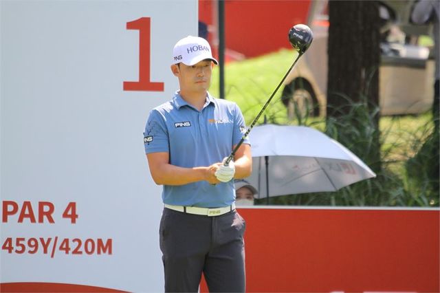 김비오는 4번 홀(파5) 첫 버디를 따내고 6번 홀(파5)에서 이글과 7번 홀(파4)에서 버디를 성공하며 기세를 높였다. 하지만 8번 홀(파3) 쓰리퍼트로 기세가 꺾이며 전반을 마쳤다.