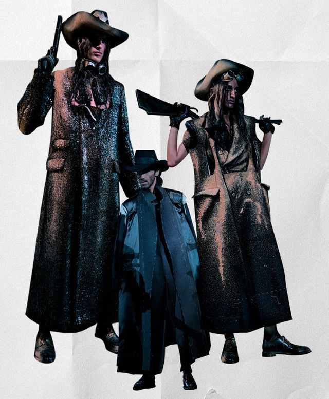 메종 마르지엘라가 일본 오모테산도의 부티크 오픈을 자축하며, 퍼포먼스 아트 <시네마 인페르노(Cinema Inferno)>에서 영감받은 아티즈널(Artisonal) 컬렉션을 도쿄 시부야에서 전시했다. 1980년대 미국 남부의 허름한 길거리에 있을 법한 극장 간판 밑으로 타비 모티브 발자국이 컬트 플롯 속으로 안내한다. 존 갈리아노는 사회에 만연한 도덕적 타락을 고유의 시그너처 해체주의 방식으로 그려냈다. 판사복의 제네바 밴드 라인을 파워 커팅 기법으로 재해석한 코트는 법의 악용과 공인의 배임에 대한 경고를 담았다. 거친 자카르 소재와 모래바람에 해진 듯한 샌드스토밍 가공법은 부패한 경찰로 등장하는 악랄한 카우보이를 표상한다.2023년 09월호