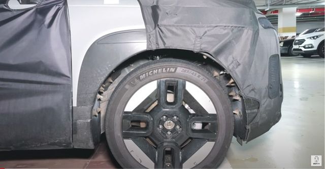 보닛의 후드 라인은 기존 아이오닉5와 비슷한 디자인을 채택할 것으로 예상된다. 측면에서 촬영한 사진을 보면 휠 사이즈는 EV9과 동일한 21인치 휠을 장착한 모습이다. 타이어는 미쉐린타이어를 적용했다. 역시 EV9과 동일한 타이어다. 아무래도 플랫폼이 같은 만큼 다수의 부품을 EV9과 공유하는 모습이다.