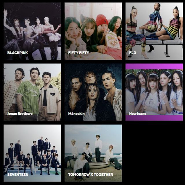 ‘MTV VMA’가 1일(이하 현지시간) 공식 홈페이지를 통해 올해의 그룹 부문 후보 명단을 공개했다. 이에 따르면 블랙핑크, 피프티 피프티, 뉴진스, 세븐틴, 투모로우바이투게더 등 K팝 그룹 5개 팀이 후보로 지명됐다. 이들은 함께 후보에 오른 조나스 브라더스, 마네스킨, 플로 등과 수상을 놓고 경쟁한다.