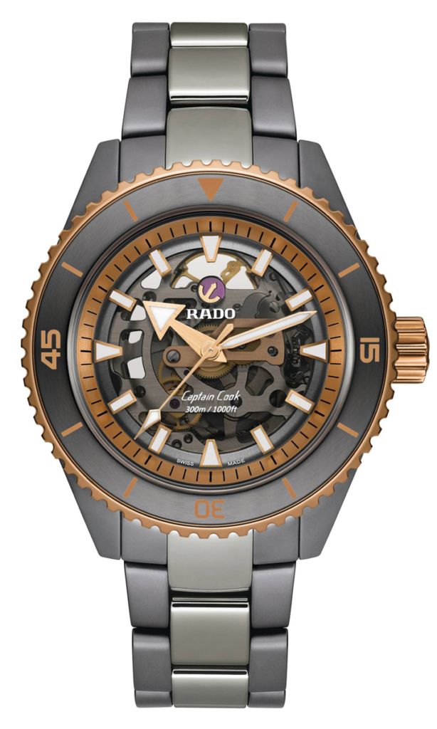 캡틴 쿡 하이테크 세라믹 스켈레톤은 라도의 세라믹 라인 중 하나로 뛰어난 내구성을 자랑하는 플라스마 하이테크 세라믹과의 결합에서 비롯한다. 프리미엄 소재 플라스마 하이테크 세라믹은 화이트 하이테크 세라믹을 초고온 플라스마 오븐에 넣고 태양 표면 온도의 약 4배에 해당하는 2만°C의 고온 가스로 분자구조에 변화를 가져와 완성한다. 이 공정을 거치면 화이트 컬러인 하이테크 세라믹 표면에 탄화지르코늄 막이 형성되며 메탈릭 컬러로 변한다. 플라스마 하이테크 세라믹은 일반 세라믹과 차별화되는 독특한 색감과 스크래치에 강한 면모를 지녀 라도의 미적 감도와 고도의 기술을 아우른 정점의 소재로 평가된다.