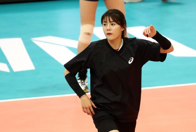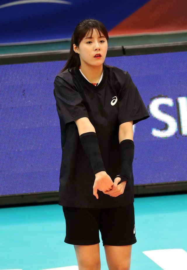 이하 이다영이 지난 2018년 5월 23일 경기도 수원시 장안구 수원실내체육관에서 열린 '2018 수원 발리볼네이션스리그 여자대회' 대한민국과 러시아의 경기 시작에 앞서 몸을 풀고 있다. / 이하 뉴스1
