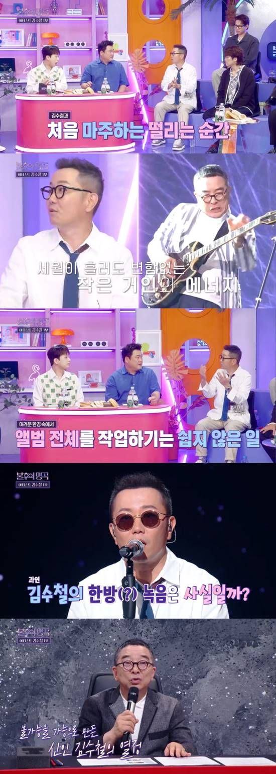 그러면서 그는 "예전에는 지금처럼 컴퓨터로 조절할 수 없지 않냐. 그때는 녹음할 때 '김수철 선배님 반만 해라'라고 이야기하셨다. 그래서 가수는 한 방으로 해야 한다고 생각했다"라고 존경을 표했다.