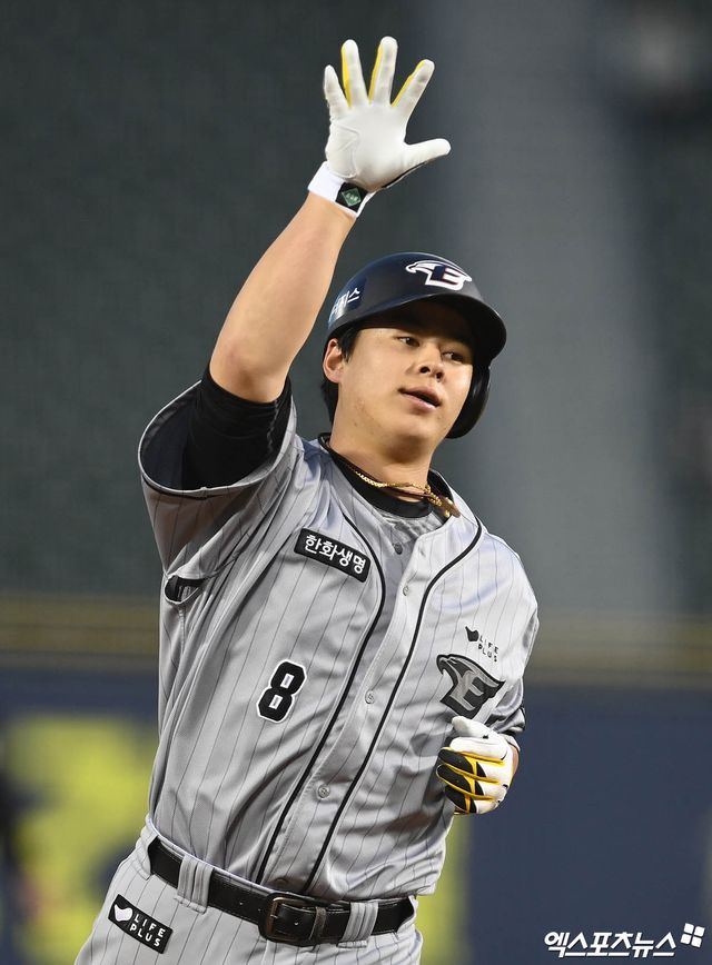 노시환은 "김태균 선배님의 후계자라는 말은 너무 좋다. 너무 존경하고 선배님을 따라갈 수 있도록 많은 노력을 해야 할 것 같다"며 "김태균 선배님처럼 꾸준함을 보여줘야 후계자라는 말을 들을 수 있지 않을까 생각한다"고 힘주어 말했다.