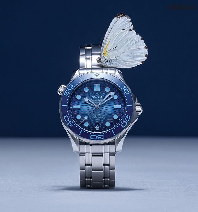 일렁이는 파도의 모습을 그대로 옮겨놓은 듯한 첫인상. 블루 세라믹 다이얼에 레이저로 음각한 물결 패턴은 분명 바다에 관련된 시계임을 짐작하게 하는 가장 큰 힌트다. 이 모델의 이름은 씨마스터로 심해를 모험하는 다이버를 위해 만들었다. 그래서 수면 아래서 제 매력을가 감없이 발산할 수 있는 기능들을 탑재했다. 두꺼운 잠수복 위에 손쉽게 착용할 수 있도록 길이 조절이 가능한 폴딩 클래스프를 갖췄으며, 인덱스와 핸즈에 야광도 료를 도포해 가시성을 확보했다. 또한 씨마스터의 상징과도 같은 헬륨 가스 배출 밸브를 장착해 깊은 물속에서도 시계를 안전하게 지킬 수 있다. 이전과는 달리 베젤의 소재를 세라믹으로 변경했는데 덕분에 마모에 더 강한 시계로 재탄생했다.2023년 09월호