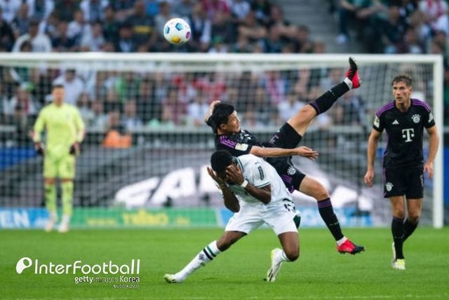 전반 25분 뮌헨의 수비가 약간 흔들렸다. 묀헨글라드바흐의 프리킥 상황, 마빈 프리드리히와 김민재가 경합했는데 프리드리히가 좋은 위치를 점유해 헤더에 성공했다. 프리드리히 헤더는 골대를 맞고 아웃됐다. 김민재가 견제하지 않았다면 뮌헨의 실점으로 연결될 수 있는 장면이었다.