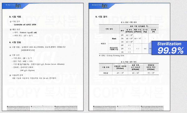 예민한 피부의 고객들도 안심하고 사용할 수 있도록 납이나 수은, 카드뮴과 같은 중금속에 대한 불검출 테스트를 진행하였고 99.9%의 살균력에 대한 결과를 얻었다.