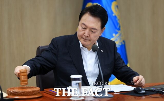 윤석열 대통령 지지율이 다시 하락세로 전환해 30%대 중반을 기록했다는 여론조사 결과가 나왔다. 지난달 29일 제36회 국무회의 주재하는 모습. /대통령실 제공