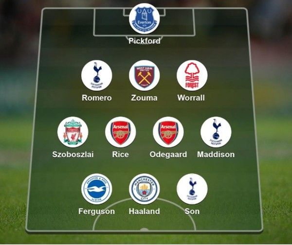 토트넘 선수가 3명으로 가장 많았고, 그 다음은 아스널이었다. 아스널은 4일 홈에서 맨체스터유나이티드를 3-1로 꺾으며 현재까지 3승 1무로 순조로운 승점 사냥을 이어갔다. 이 경기에서 외데고르와 라이스가 각각 1골씩 터뜨렸고, 가브리엘 제주스도 쐐기골을 보탰다.