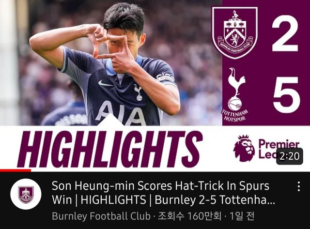 그런데 번리가 다른팀 선수인데다 자신들에게 해트트릭을 꽂아넣으며 패배를 안긴 손흥민의 하이라이트 영상을 유튜브에 게시해 화제가 됐다. 심지어 번리가 올린 손흥민 영상이 엄청난 조회 수를 기록하면서 팬들을 놀라게 했다.
