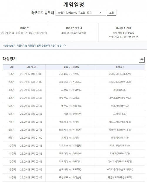 9월 5일(화) 오전 8시부터 축구토토 승무패 49회차 발매 개시