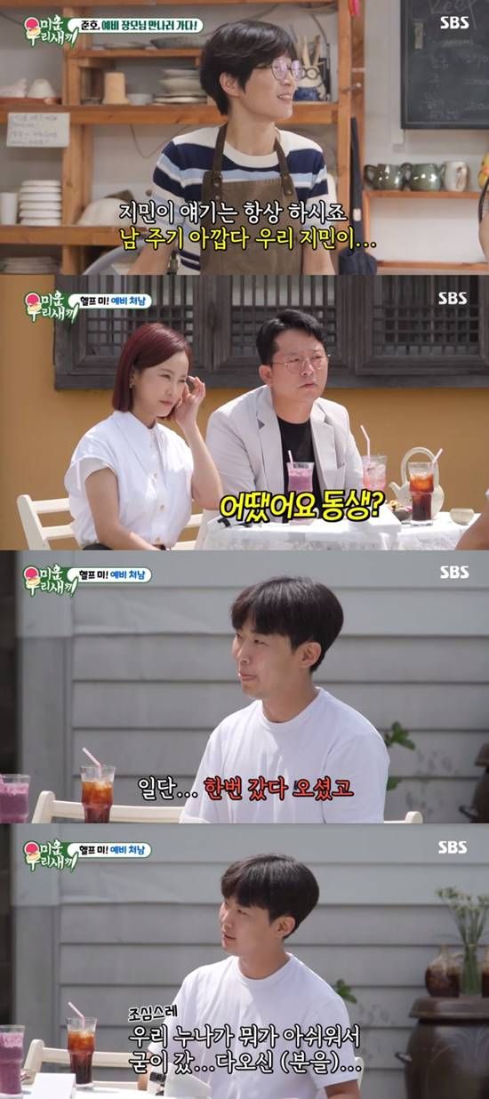 그러면서 김지민의 동생은 "씀씀이가 너무 헤프시다고 하시더라"라고 이야기했다. 김준호는 "어머님의 선물을 지민이와 서울 백화점에서 사려고 했는데, 지민이가 사지 말라고 하더라"라고 일화를 언급하며, 장모님과의 만남에 바짝 긴장하는 모습을 보였다.