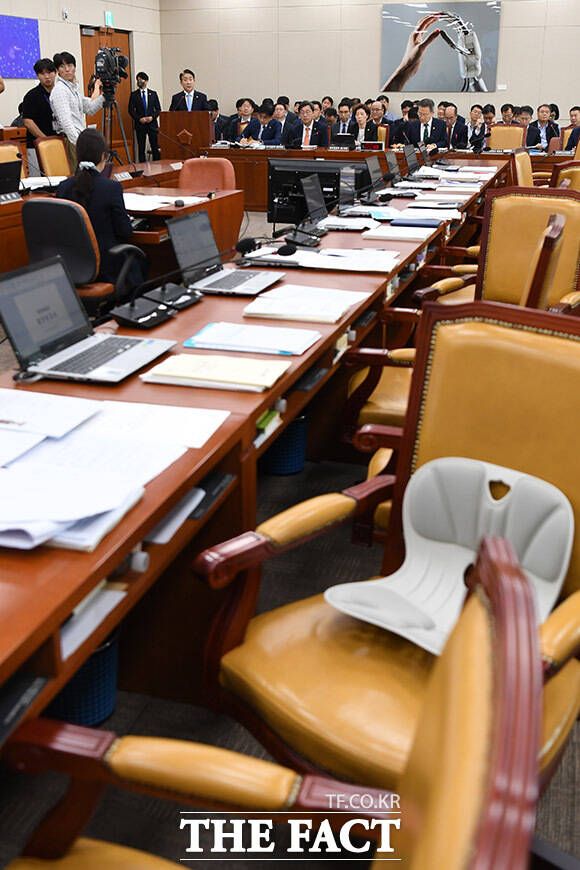 이 위원장의 제안설명 중 퇴장한 민주당 의원들.