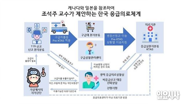 조 교수는 그럼에도 거듭해서 강조했다. 환자를 배분하고 분산시키는 체계, 특히 한국형 응급환자 분류도구를 뜻하는 KTAS(Korean Triage and Acuity Scale)를 정착시켜야 한다고 수차례에 걸쳐 강조했다. KTAS는 응급환자를 평가할 때 증상을 중심으로 분류하기 위해 고안됐다. 분류 결과에 따라 진료의 우선순위가 결정된다.