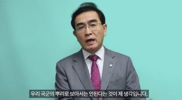 태영호 국민의힘 의원은 8월 29일 자신의 유튜브 채널에 올린 영상에서 "현재 국방부와 육사에 있는 독립운동가 흉상 중 홍범도 장군 흉상만은 독립기념관으로 이전해야 한다고 본다"며 "사회주의자였던 그를 일본군과 싸운 공로가 있다는 이유로 우리 국군의 뿌리로 보아서는 안 된다는 것이 저의 생각"이라고 말했다. /태 의원 유튜브 채널 갈무리