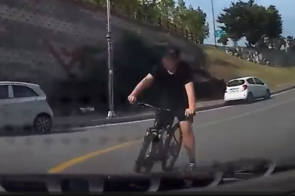 한 운전자가 지난당 27일 오후 3시쯤 동네 아파트 단지 주변 도로에서 역주행하던 자전거를 들이받는 사고가 발생했다. [사진=유튜브 '한문철TV']