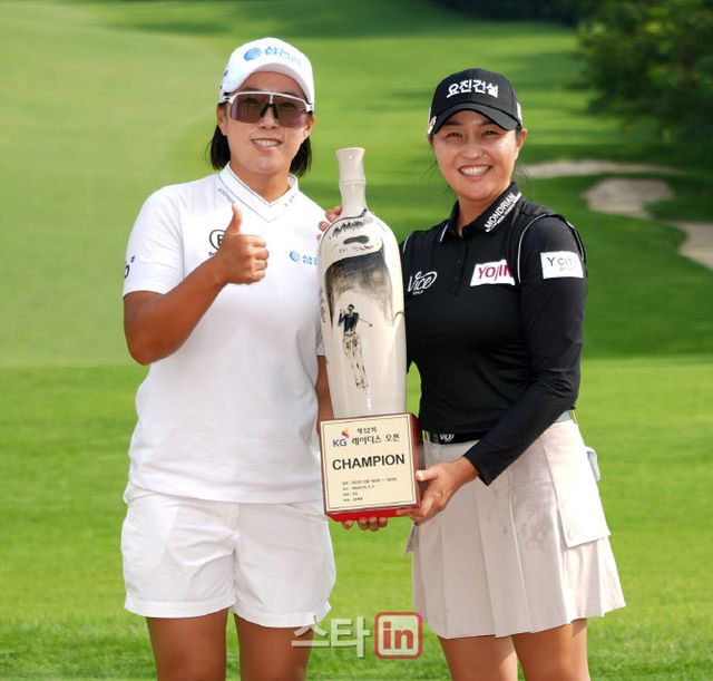 KG 레이디스 오픈에서 259전 260기 우승에 성공한 서연정은 우승 뒤 선배 김해림에게 고마움을 전하며 우승의 기쁨을 함께 나눴다.
