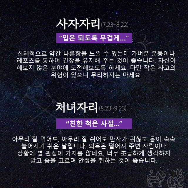 Δ 사자자리 : 입은 되도록 무겁게…