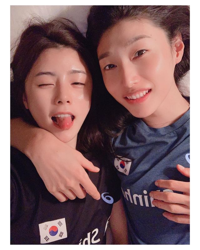 사진 속에는 김연경이 이다영을 어깨동무를 하고 누워서 찍은 모습이 담겨있다.