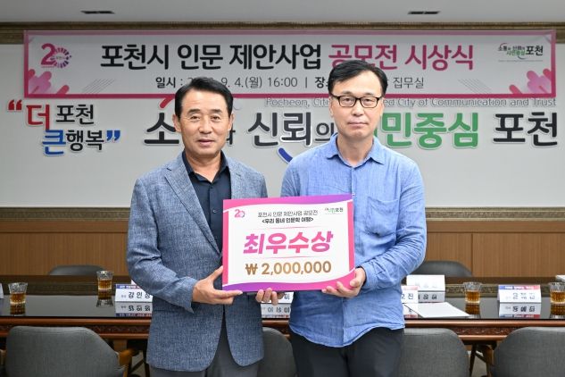 [파이낸셜경제=김영란 기자] 포천시는 지난 4일 포천시장 집무실에서 ‘포천시 인문도시 브랜드 및 인문 제안사업 공모전’ 시상식을 개최했다.