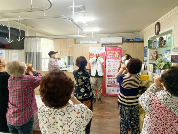 | ▲ 대덕구보건소 남부건강생활지원센터 다학제팀이 지역 의료기관을 방문해 지역주민을 대상으로 운동 교육을 진행하고 있다. |