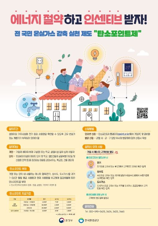 가정에서 에너지를 절감할 경우 연 2회, 감축률(5%~10% 미만, 10~15% 미만, 15% 이상)에 따라 포인트를 750포인트에서 최대 2만 5,000포인트까지 부여한다. 1포인트당 2원 이내로 인센티브를 받을 수 있다.