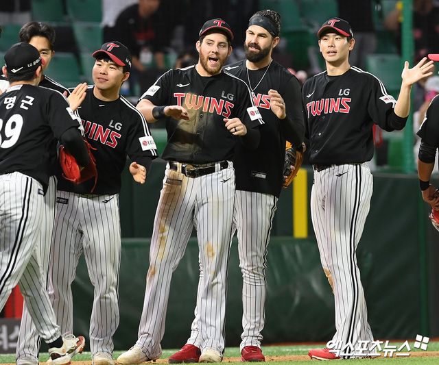 (엑스포츠뉴스 김지수 기자) 선두 LG 트윈스가 1시간 40분 넘게 우천으로 경기가 중단되는 우여곡절 끝에 2위 KT 위즈를 꺾고 정규리그 우승의 유리한 발판을 마련했다. 승부처에서 수차례 결정적인 '그물망 수비'로 귀중한 승리를 챙겼다.