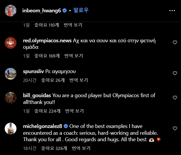 하지만 팬들은 마지막까지 그를 비난하기 바빴다. "다시는 올림피아코스에 돌아오지 마라", "배신자다", "팀보다 위대한 선수가 없다"는 식의 악플로 황인범의 정성에 먹칠을 했다. 황인범이 이적하는 과정에서 올림피아코스를 무시했다는 그리스 언론의 견해만 듣고 감정적인 언사를 쏟아낸 것이다.