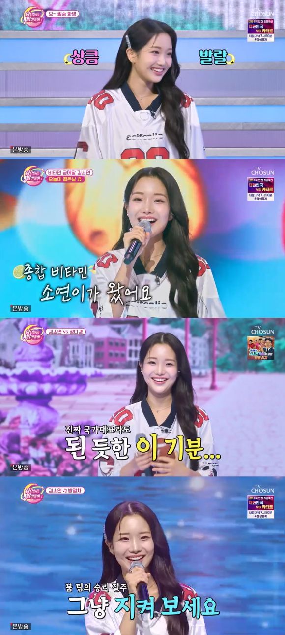 '오 필승 화밤' 특집으로 꾸며진 이 날 방송에서 김소연은 럭비 유니폼을 입고 '오늘이 젊은 날'을 부르며 상큼한 비주얼로 등장해 눈길을 끌었다.