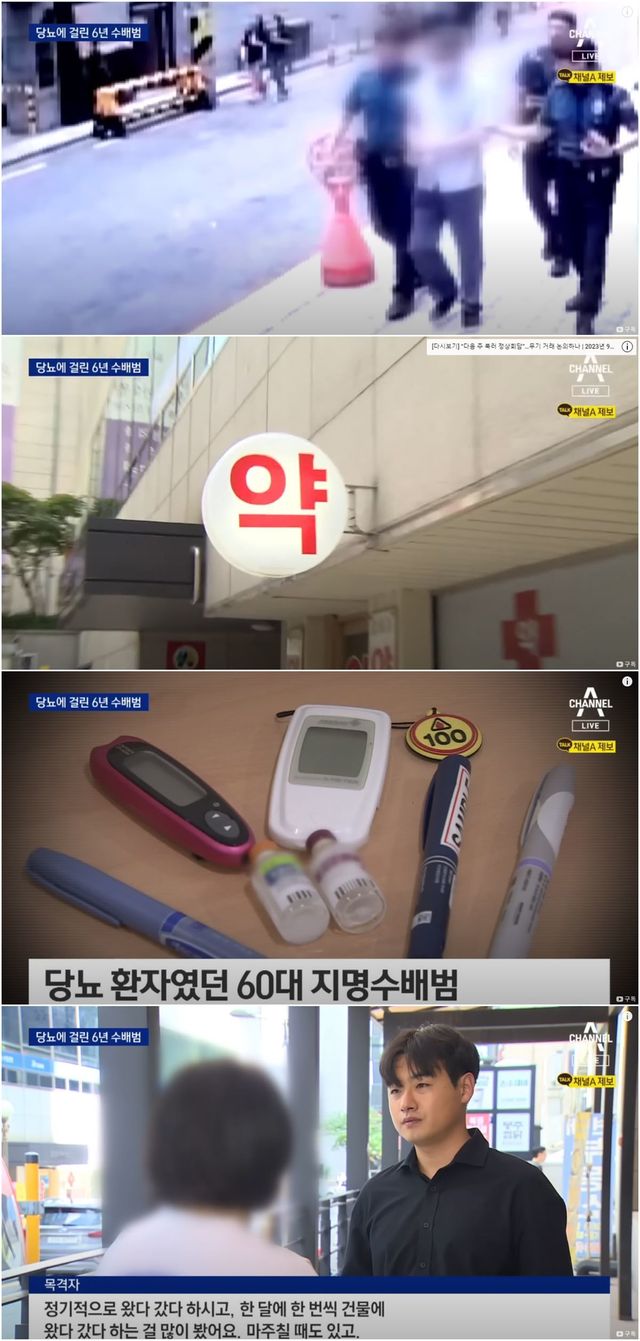 6년 넘게 수사기관을 피해 도망 다니던 A급 수배범이 당뇨병으로 병원에 다니다 경찰에 체포된 모습. / 이하 유튜브 채널 '채널A 뉴스'