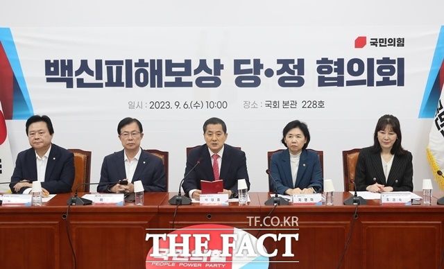 박대출 국민의힘 정책위의장은 이날 오전 국회에서 열린 '백신 피해보상 당정협의회'를 마친 후 결과 브리핑에서 "오늘 당정은 코로나 백신 접종 부작용 피해보상 제도와 관련해 현재 운영 실태를 중간 점검하고, 제도적으로 개선·보완할 부분에 대해 집중적으로 논의했다"며 이같이 밝혔다.
