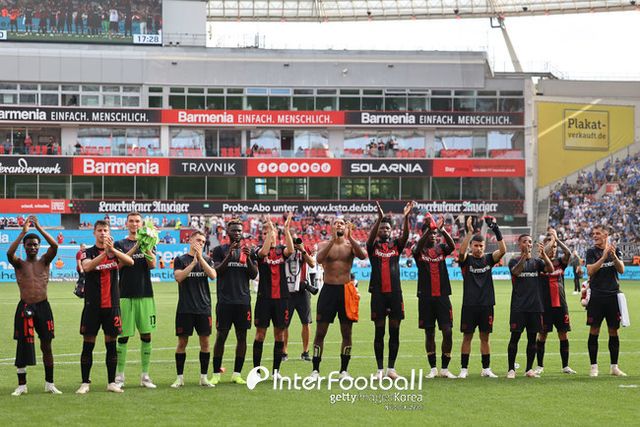 레버쿠젠은 시즌 초반 결과, 내용 다 얻고 있다. 독일축구협회(DFB) 포칼 1라운드 테토니아 오테센과 대결에서 8-0으로 이기면서 기분 좋게 시즌을 시작했다. 1라운드에서 까다로운 라이프치히를 만났는데 3-2로 이겼다. 2라운드 묀헨글라트바흐전에선 3-0 대승을 거뒀다. 3라운드 다름슈타트전에선 5-1로 이겼다. 정리하면 4경기 19득점 3실점이다.