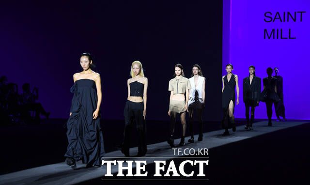 [더팩트ㅣ이새롬 기자] 2024 S/S 서울패션위크(Seoul Fashion Week) '세인트 밀' 쇼가 6일 오후 서울 중구 동대문디자인플라자(DDP)에서 열린 가운데, 모델들이 런웨이를 걷고 있다.