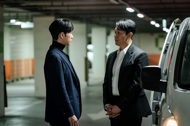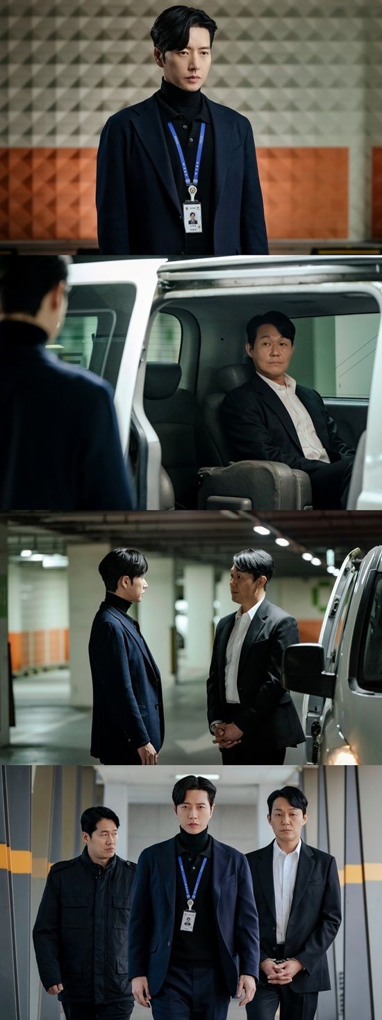 사진 속 김무찬은 지하 주차장으로 보이는 곳에서 누군가를 기다리고 있다. 표정에 감정은 감췄지만 눈빛만큼은 날카롭게 빛나고 있어 궁금증을 자극한다. 다음 사진에는 자동차에 죄수복 대신 검은 슈트를 입은 권석주가 탑승해 있다. 이를 통해 김무찬이 청낭교도소에서 나온 권석주를 기다리고 있었음을 짐작할 수 있다. 그렇게 마주한 김무찬과 권석주 사이에 팽팽한 긴장감이 엿보인다.