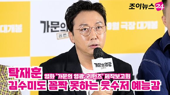 [조이뉴스24 문수지 기자] 방송인 탁재훈이 지난 5일 오전 서울 용산구 CGV 용산아이파크몰점에서 열린 영화 '가문의 영광: 리턴즈'(감독 정태원, 정용기) 제작보고회에 참석해 소감을 말하고 있다.