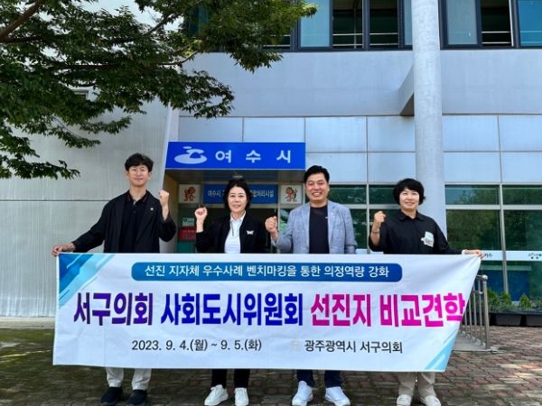 [파이낸셜경제=김윤정 기자] 광주 서구의회 사회도시위원회가 지난 9월 4일부터 5일까지 이틀간의 일정으로 여수 도시관리공단 등 여수시 일원과 및 순천 도시재생마을 견학을 통해 지역 발전 방안 모색에 나섰다.
