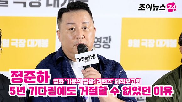 [조이뉴스24 문수지 기자] 방송인 정준하가 지난 5일 오전 서울 용산구 CGV 용산아이파크몰점에서 열린 영화 '가문의 영광: 리턴즈'(감독 정태원, 정용기) 제작보고회에 참석해 소감을 말하고 있다.